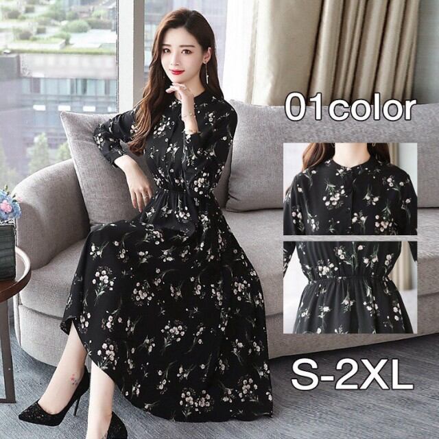 ワンピース レディース 花柄ワンピース コーデュロイ マキシ丈ワンピース 体型カバー ロング 大きいサイズ 可愛い 長袖 オシャレ 春秋