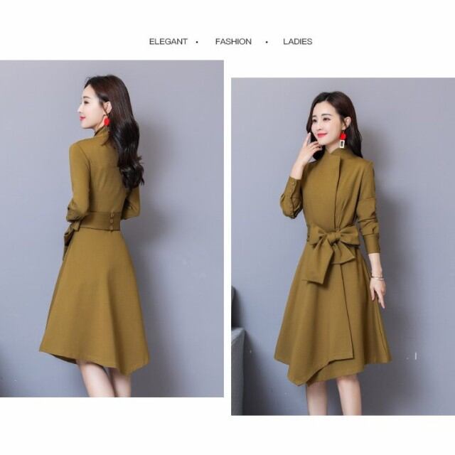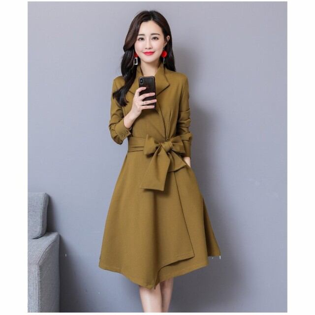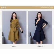連携キーワード:ワンピース レディース ワンピース 春秋 きれいめ膝丈ワンピース 上品 長袖 リボン ワンピース Aライン 着痩せ 通勤 結婚式ドレス お出かけ 大人