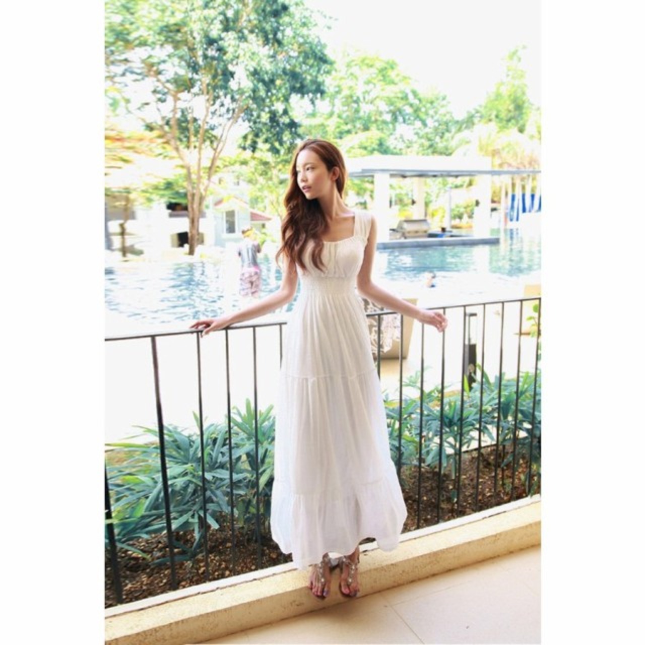 マキシワンピース シフォンワンピース ドレス マキシ丈ワンピース 結婚式 白 ホワイト 春 ロング ノースリーブ マキシワンピ ワンピース レディース