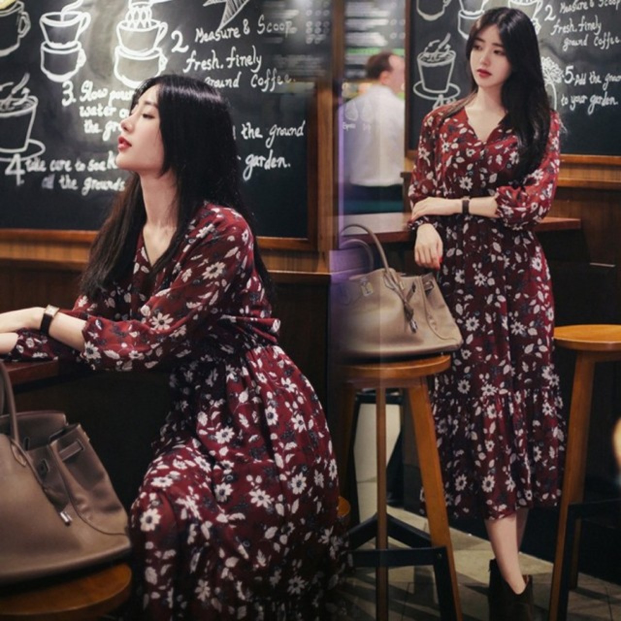 連携キーワード:ワンピース レディース 春夏 マキシ丈ワンピース 花柄 シフォンワンピース 体型カバー 長袖 大きいサイズ ロングワンピース 女性 大人可愛い 韓国風