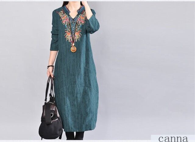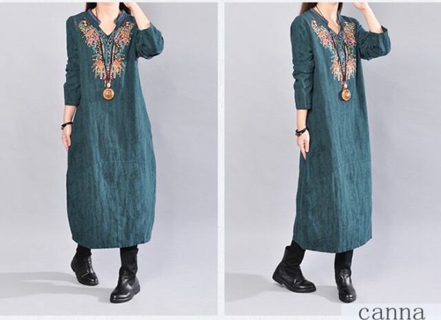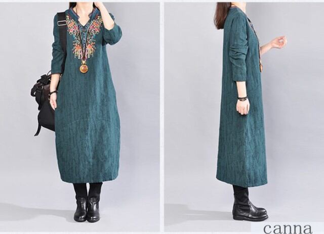 綿麻混ワンピース ワンピース ロング レディース マキシワンピース ロング丈 ワンピース コットンリネン 体型カバー 長袖 花柄ワンピース チュニック ロングワンピース Vネック 刺繍 森ガール ナチュラル服 秋 冬 秋ワンピース ゆったり 大きいサイズ 着痩せ お洒落 おしゃれ オシャレ ゆるっと 旅行 ママワンピース 母親 ママ ワンピース 黒 赤 緑 M L 2L 3L