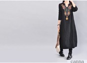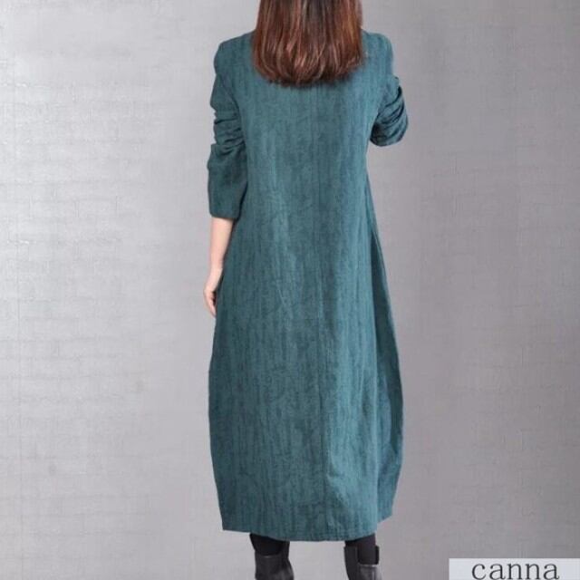 ワンピース コットンリネン レディース ロング丈 長袖 ロングワンピース ゆったり 綿麻混 ワンピース