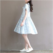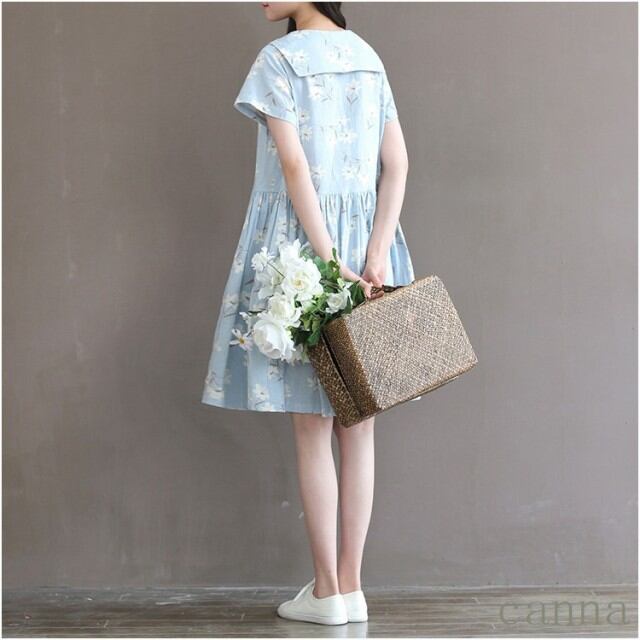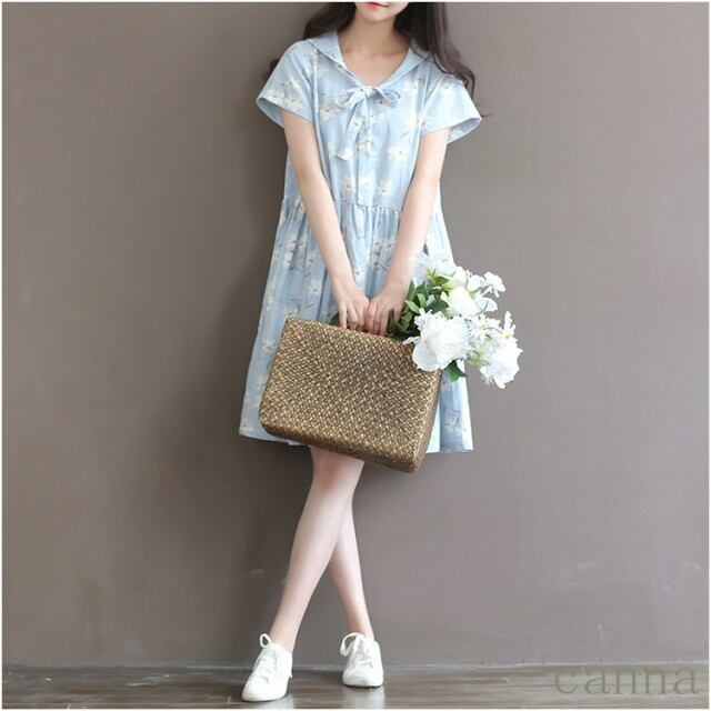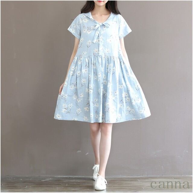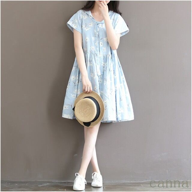 ワンピース レディース ドレス 半袖 膝丈 森ガール 花柄 フレア 大きいサイズ 春 夏