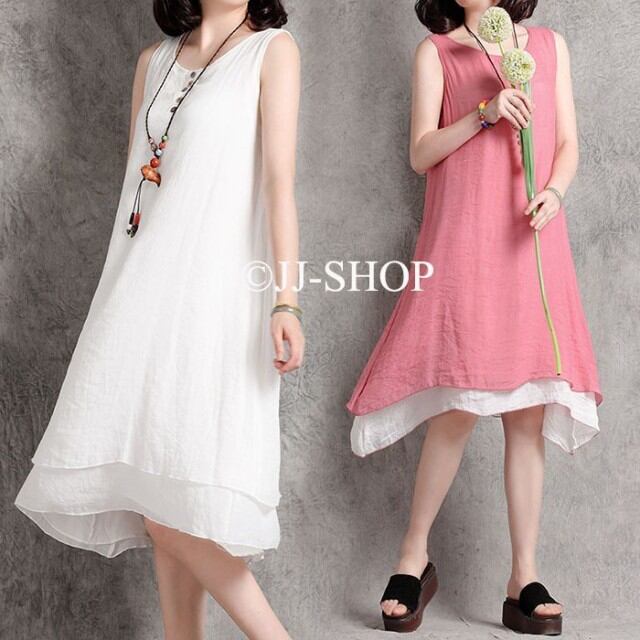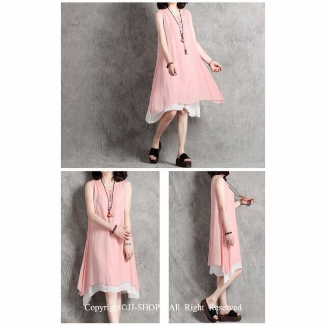 激安セール ワンピース マキシワンピ チュニック レディース 体型カバー ゆったり フレアスカート ノースリーブ 夏 膝丈 ひざ丈 Aライン 大きいサイズ
