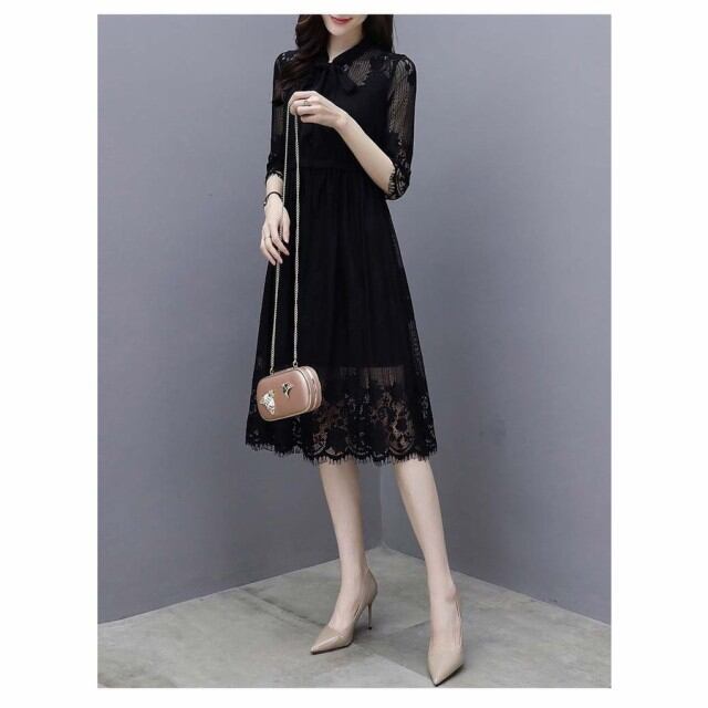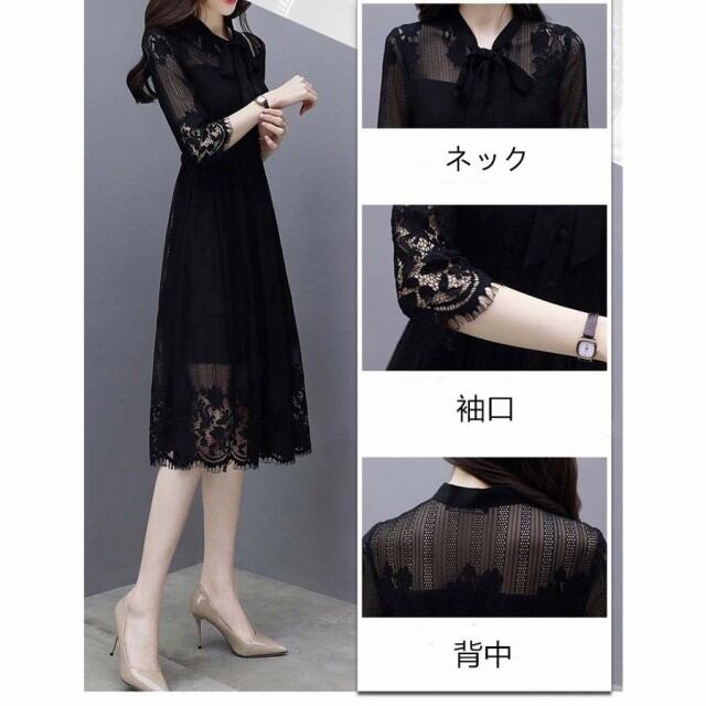 連携キーワード:ワンピース レディース 40代 春夏 マキシ丈ワンピース きれいめ 大きいサイズ オシャレ レース 七分袖 通勤 リボン 膝丈ワンピース ロング 着痩せ