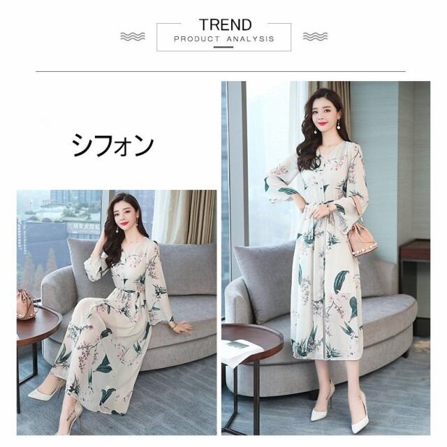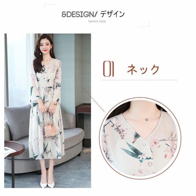 連携キーワード:ワンピース レディース 春夏 きれいめマキシ丈ワンピース 花柄 シャツワンピース シフォン Vネック 長袖 シースルー 結婚式ドレス 通勤 ロング 大人 上品