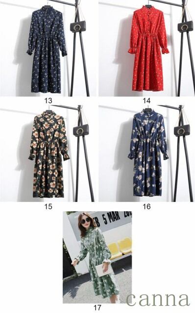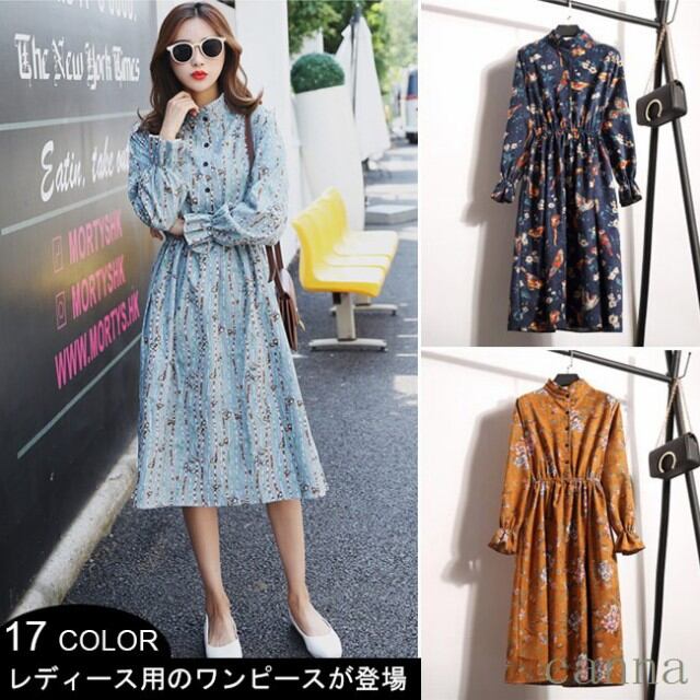 レディース ワンピース 長袖 膝丈 花柄 コー
