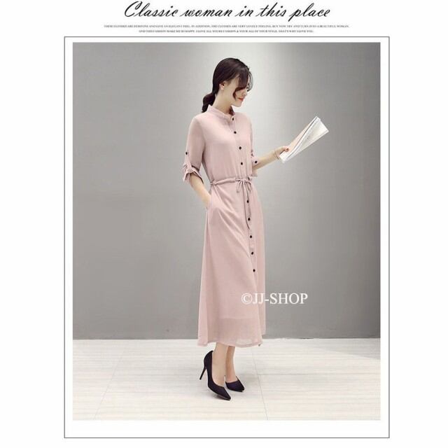 ワンピース レディース 膝丈ワンピース 春夏 五分袖 シャツワンピース リボン付き ロング丈 シフォンワンピース マキシ丈ワンピース きれいめ 着痩せ 通勤 上品