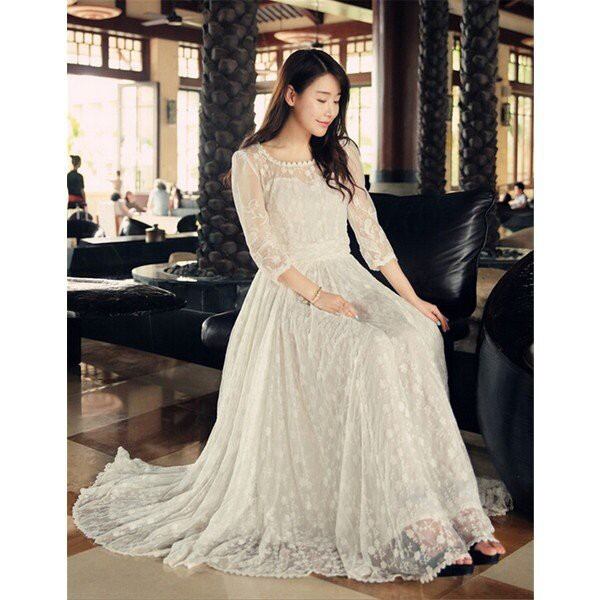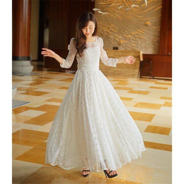 ワンピース レディース キレイめ マキシワンピース ロング 七分袖 レースワンピース 大人 上品 マキシワンピース パーティードレス 結婚式