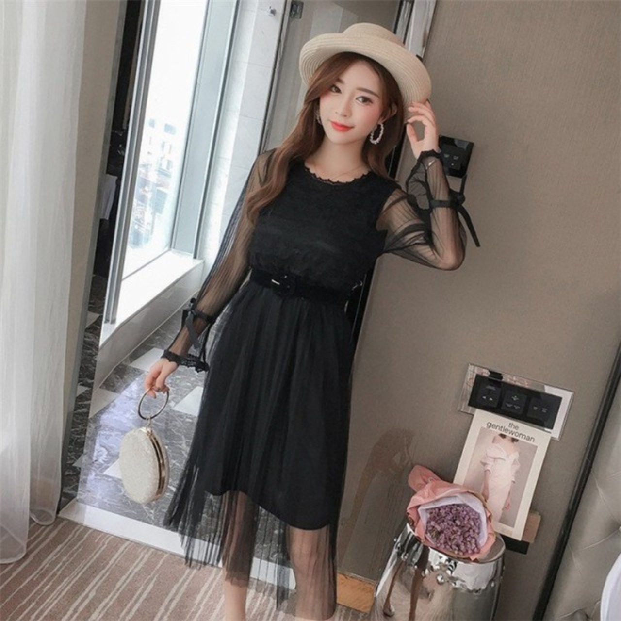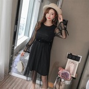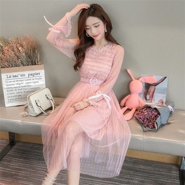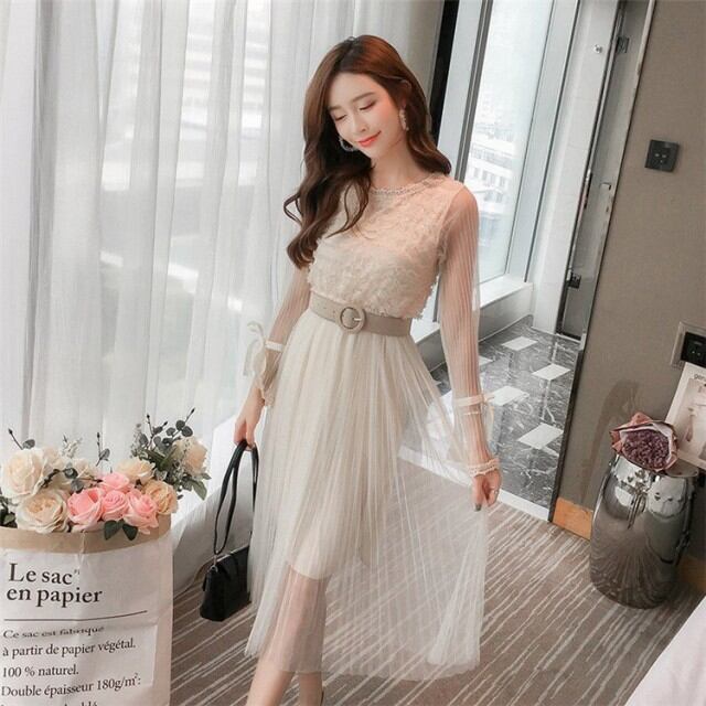 レースワンピース 結婚式 パーティードレス 結婚式 フォーマル 長袖 フレア 膝丈 ワンピース レディース 結婚式 オシャレ 上品 秋