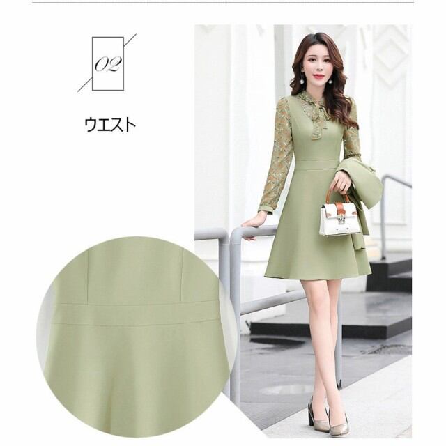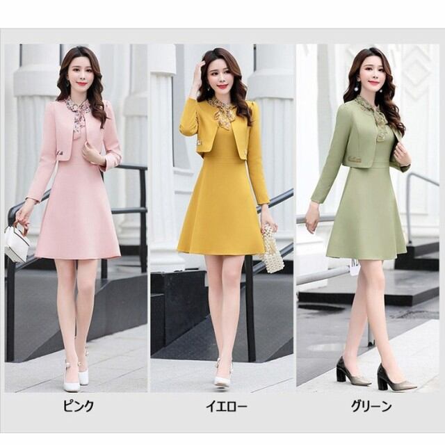 連携キーワード:ワンピース セットアップ レディース 春秋 きれいめ 花柄 膝丈ワンピース Pコート 韓国風 アウター ショート丈 リボン 結婚式ドレス 通勤 着痩せ 上品 3色