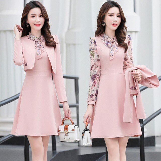 ワンピース セットアップ レディース 春秋 きれいめ 花柄 膝丈ワンピース Pコート 韓国風 アウター ショート リボン 結婚式ドレス 通勤 着痩せ 上品 3色