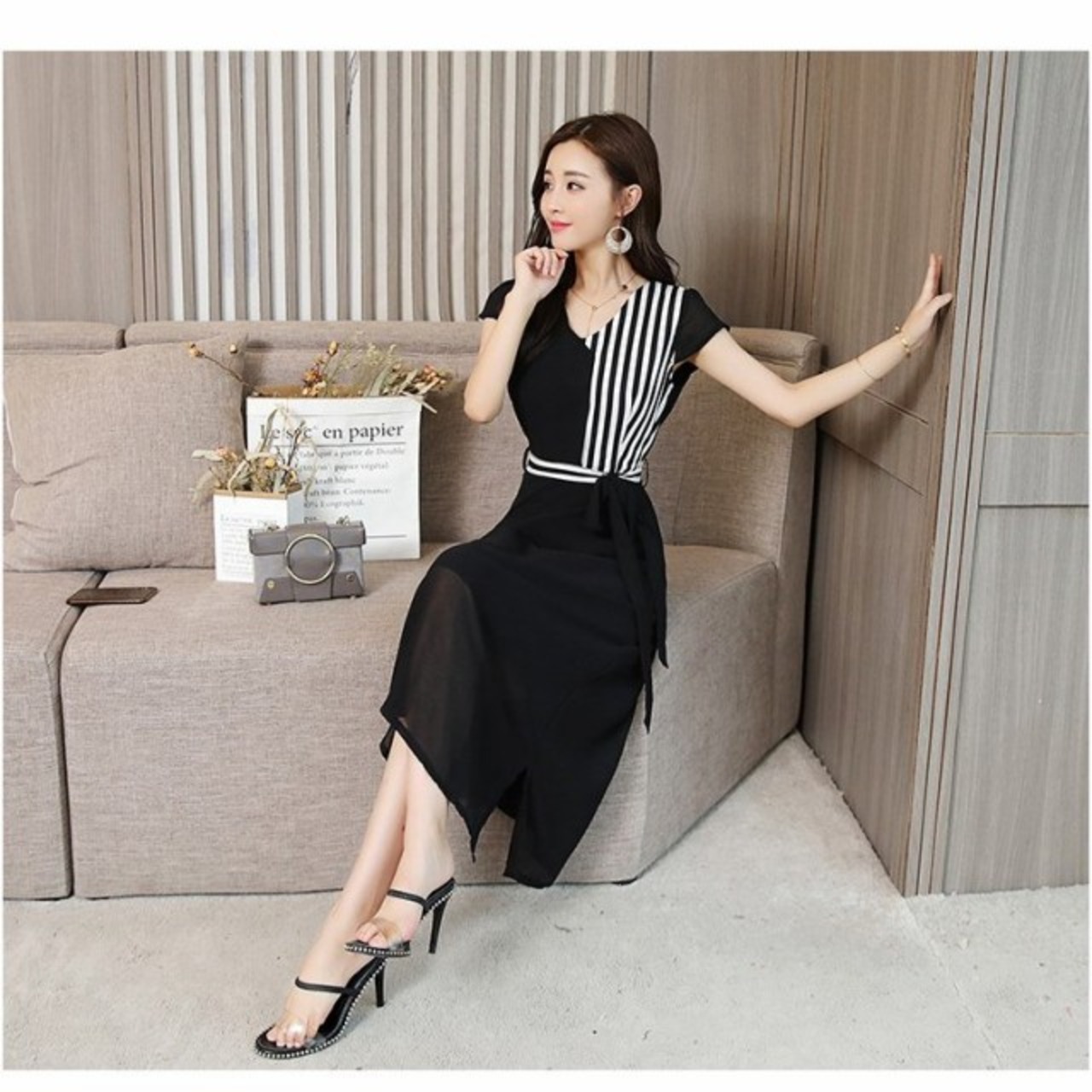 連携キーワード:ワンピース レディース 膝丈ワンピース 春夏 半袖 ワンピース vネック ボーダー柄 リボン付き Aライン 大きいサイズ きれいめ 着痩せ 通勤 大人 上品 新作 2色