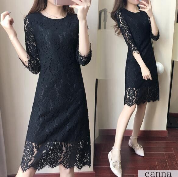 レディース ワンピース 膝下丈 30代 OL きれいめ 結婚式 通勤 着痩せ 大きいサイズ 5色 タイト レース 無地