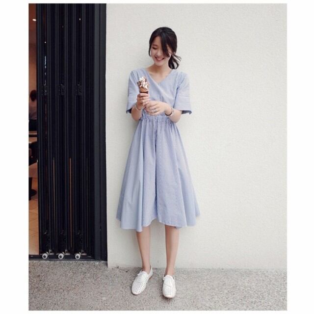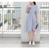 連携キーワード:ワンピース レディース 春夏 膝丈ワンピース きれいめ ボーダー 半袖 膝丈ワンピース ロング 通勤 OL 着痩せ オシャレ 上品 新作