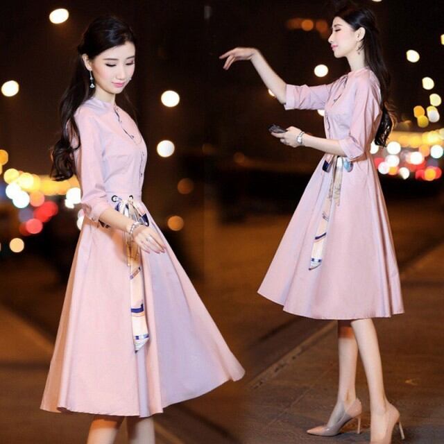 連携キーワード:ワンピース レディース 春秋 膝丈ワンピース Aライン きれいめ 大きいサイズ 七分袖 ベルト付き オシャレ 通勤 着痩せ 膝丈ワンピース ロング 上品 2色