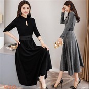 ワンピース レディース キレイめ 黒ワンピースミモレ丈 冬 フォーマル 二次会 パーティードレス 秋 Aラインワンピース ロングワンピース