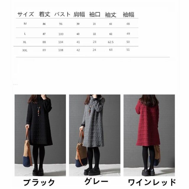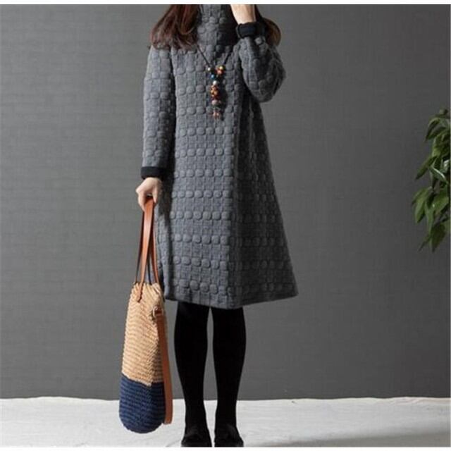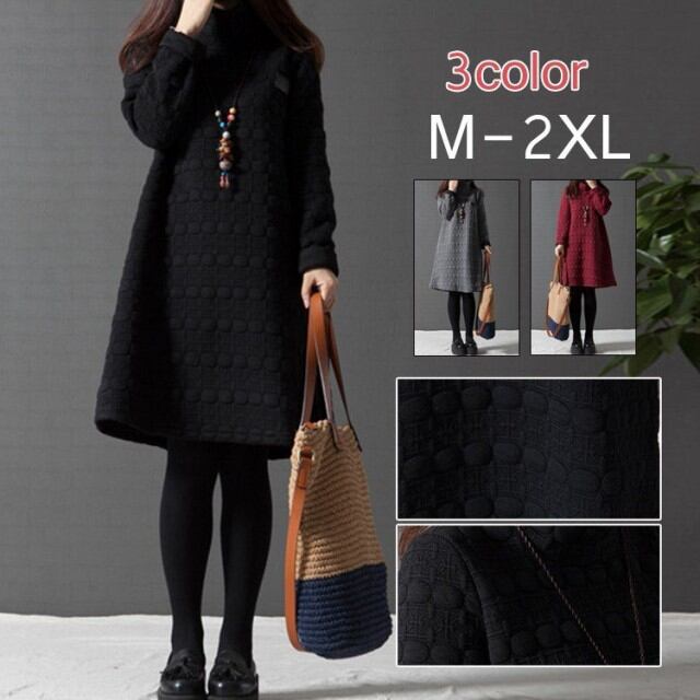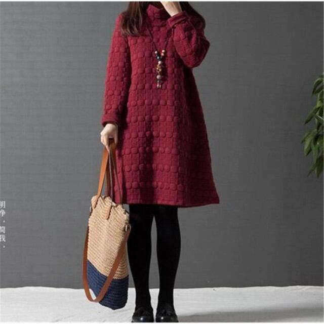 ワンピース チュニック ドット ワンピ ハイネック Aライン 長袖 体型カバー レディース