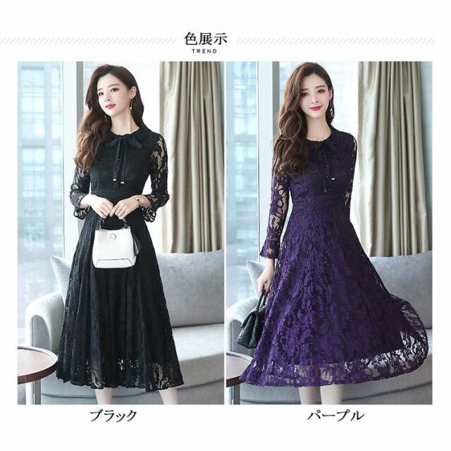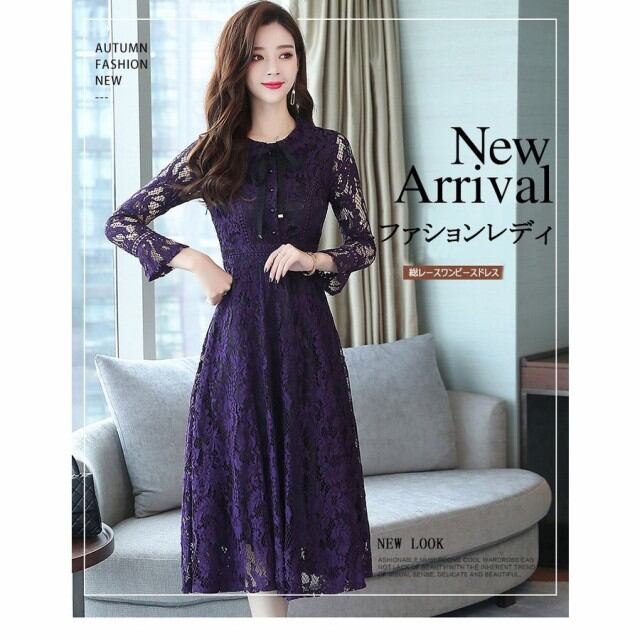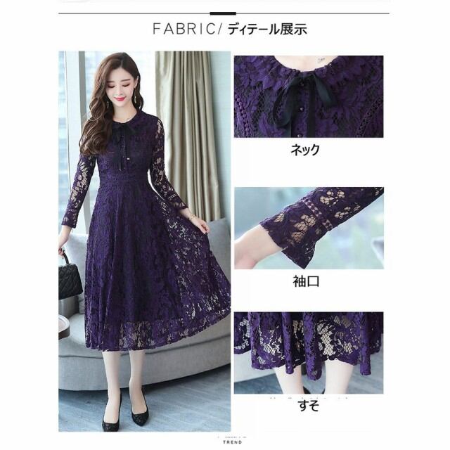 連携キーワード:ワンピース レディース 春秋冬 きれいめ マキシ丈ワンピース 総レースドレス 長袖 Aラインワンピース 結婚式ドレス 通勤 ロング 着痩せ オシャレ 2色