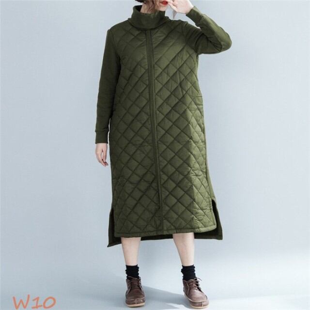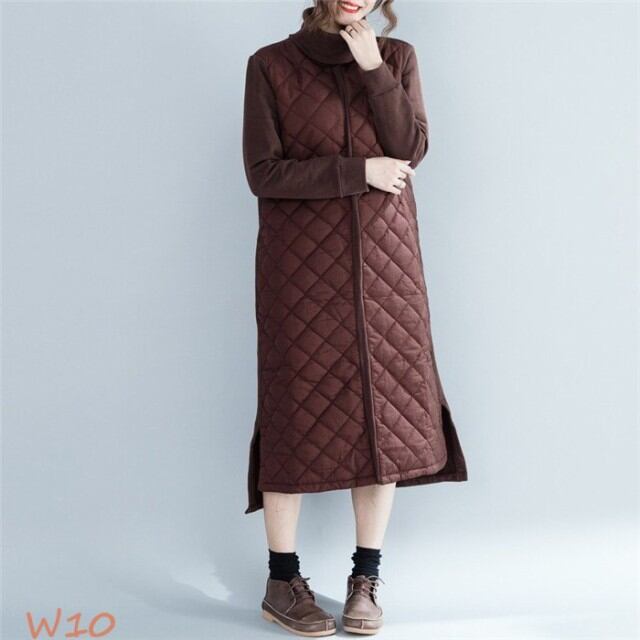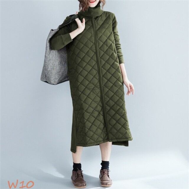 【キーワード】:ワンピース ロングワンピース スリット ロングワンピ チュニック 30代 40代 50代 60代 ロング丈 マキシ丈 ワンピ ハイネック 冬ワンピース 中綿入れ 防寒 長袖 タートルワンピース ゆったり 体型カバー 着痩せ 女性 大人 上品 オフィス 通勤 お洒落 カジュアル シンプル 普段着 女性らしい 緑 コーヒー色