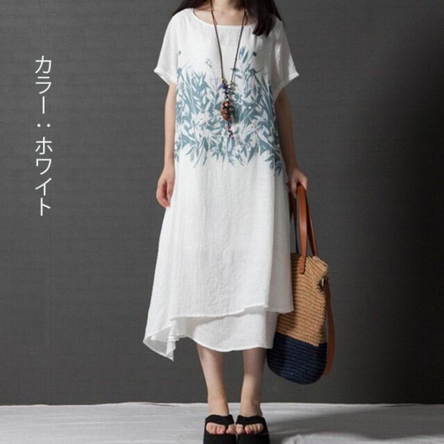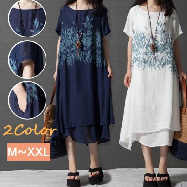 レディース ワンピース マキシワンピ マキシ丈 ロング 半袖 フレア リゾート 無地 ワンピース チュニック 大きいサイズ ロング Aライン 体型カバー