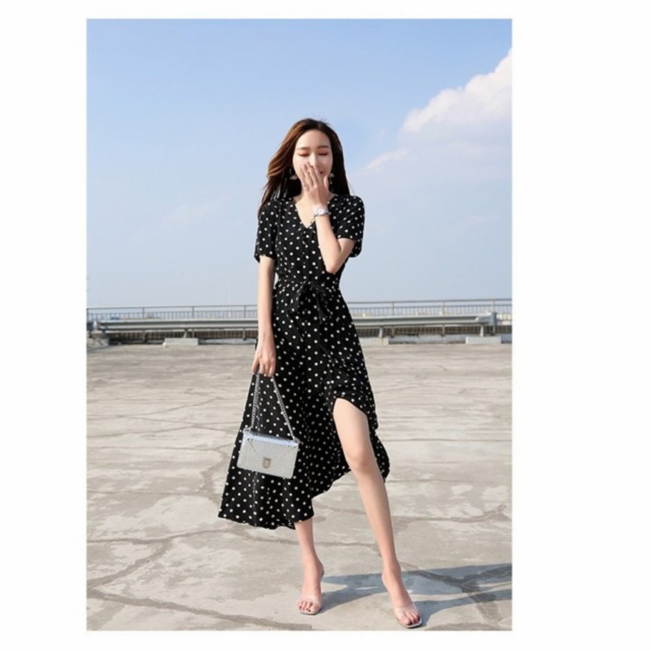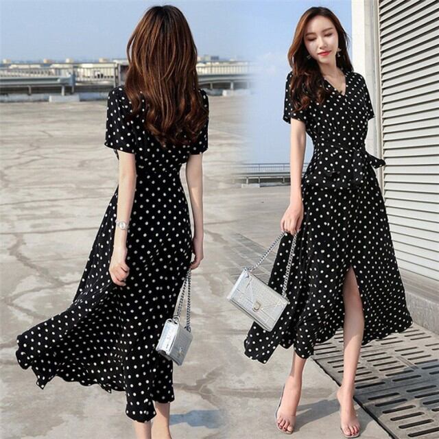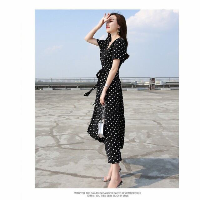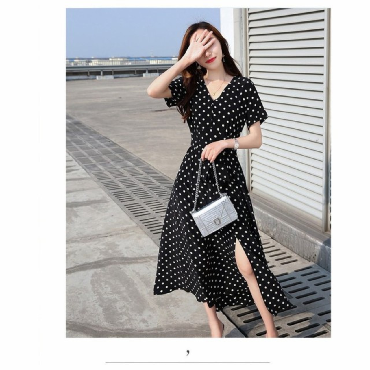 連携キーワード:ワンピース レディース 春夏 ドット柄ワンピース きれいめ 大きいサイズ マキシ丈 シフォン 通勤 Vネックワンピース リボン付き オシャレ 上品 ロング 着痩せ