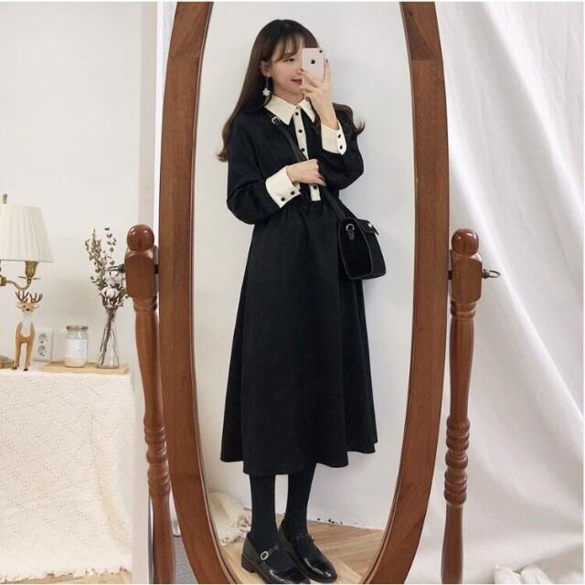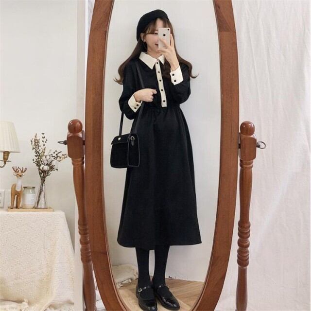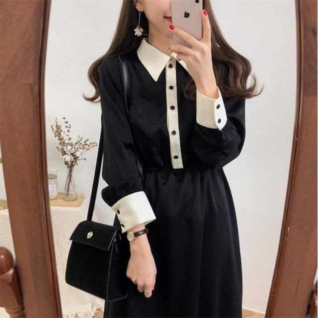 連携キーワード:ワンピース レディース 春秋 きれいめ マキシ丈 黒ワンピース 配色 オフィス 長袖 ワンピース 結婚式ドレス 通勤 OL ロング 大人 上品 お出かけ