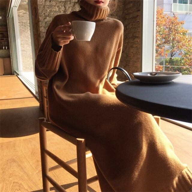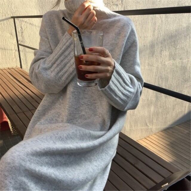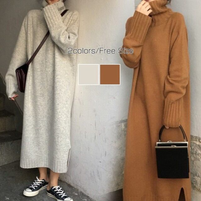 ハイネック ワンピース レディース ニットワンピース ミディ ロング リブニット レディース ワンピース ニット レディース ロングニットセーター
