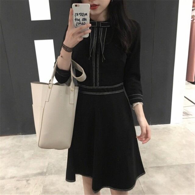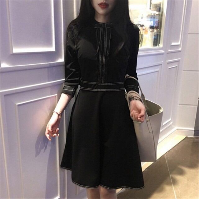 ワンピース レディース チュニック 秋 秋冬 七分袖 大人 ミディワンピース 7分袖 ベルスリーブ ゆったり 袖コン 無地 ブラック 黒