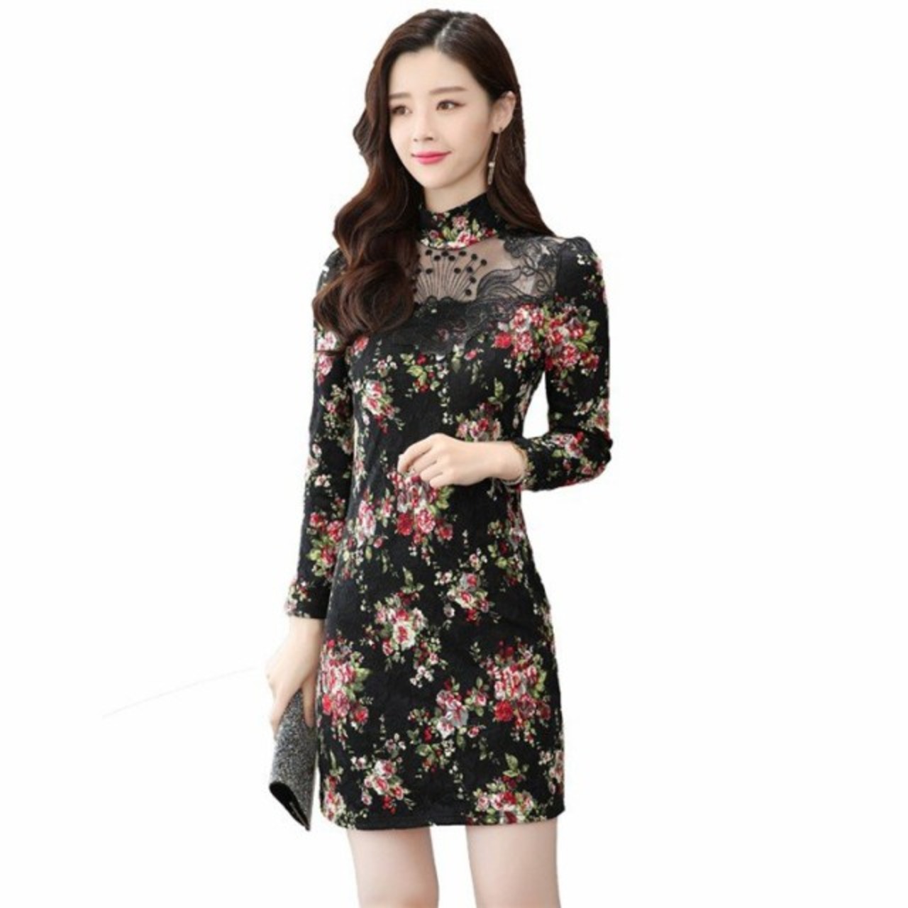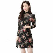 ワンピース 秋冬 レディース 裏起毛 ワンピース タートル 厚手 長袖 ゆったりワンピ 膝丈 Aライン 花柄 体型カバー 大きいサイズ エスニック 防寒
