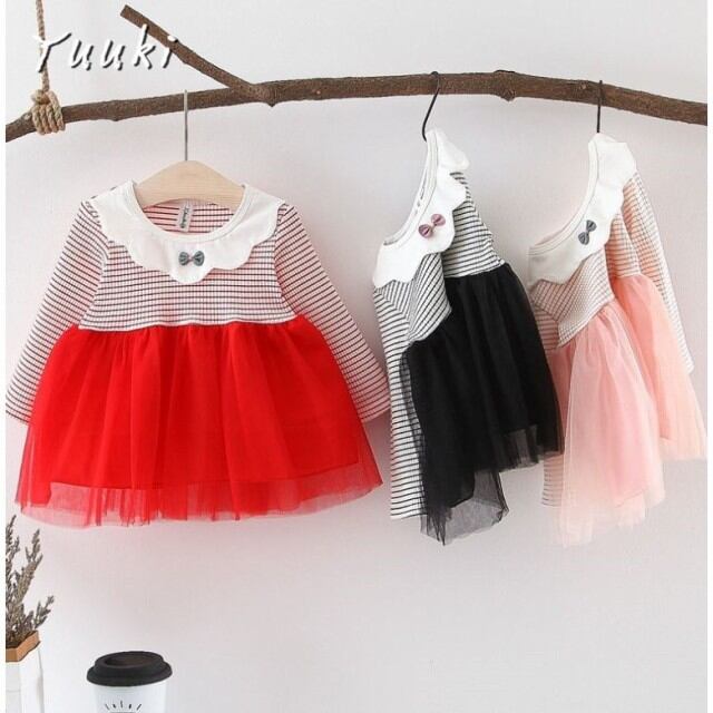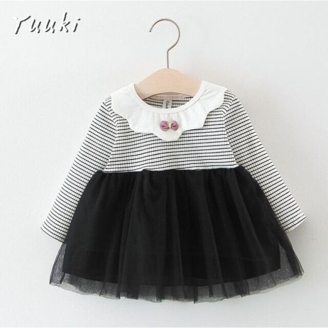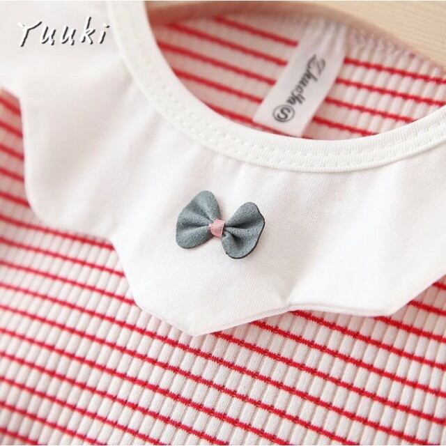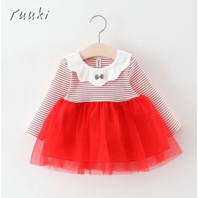 子供服 長袖 ワンピース 韓国 ドレス こどもドレス キッズ ファッション 冬 春 新作 ベービー服 キッズ リボン しま柄 ストライプ 綿