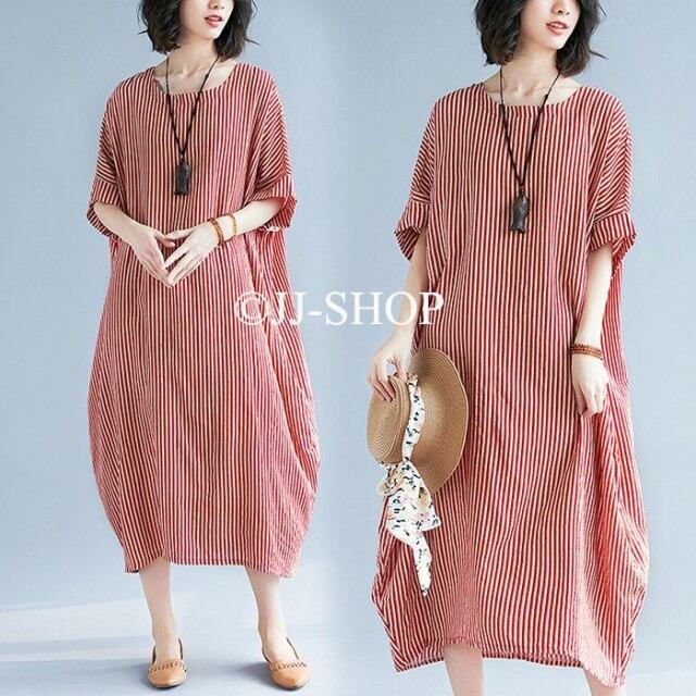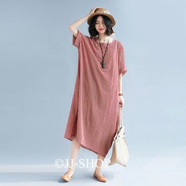 ワンピース チュニック レディース 半袖 夏 膝丈 ひざ丈 Aライン 体型カバー 大きいサイズ ゆったり ナチュラル 綿麻 夏コーデ ワンピース マキシワンピ