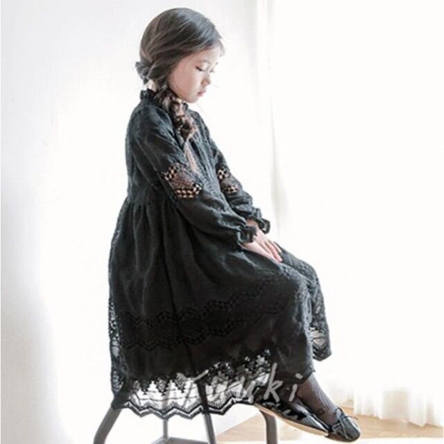 子供ドレス 女の子ワンピース チュールワンピース キッズ ワンピースドレス 春秋 黒いワンピース 発表会//卒園式/入学式/パーティ