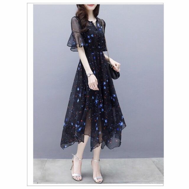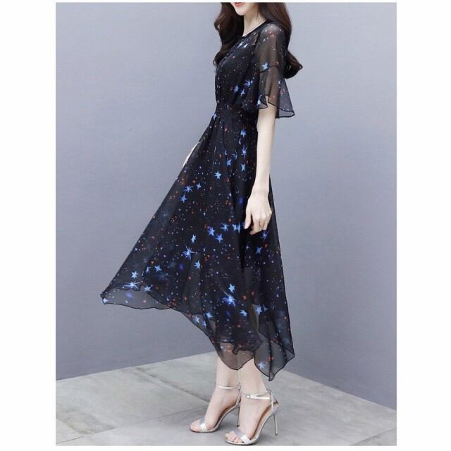 連携キーワード:ワンピース レディース 春夏 マキシ丈ワンピース きれいめ 大きいサイズ シフォン 星柄 半袖 マキシ丈ワンピース ロング 結婚式 ドレス 着痩せ オシャレ 上品