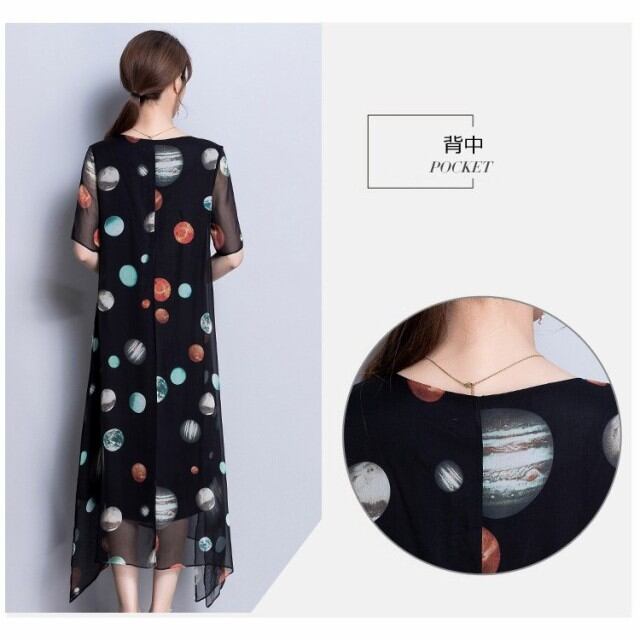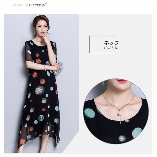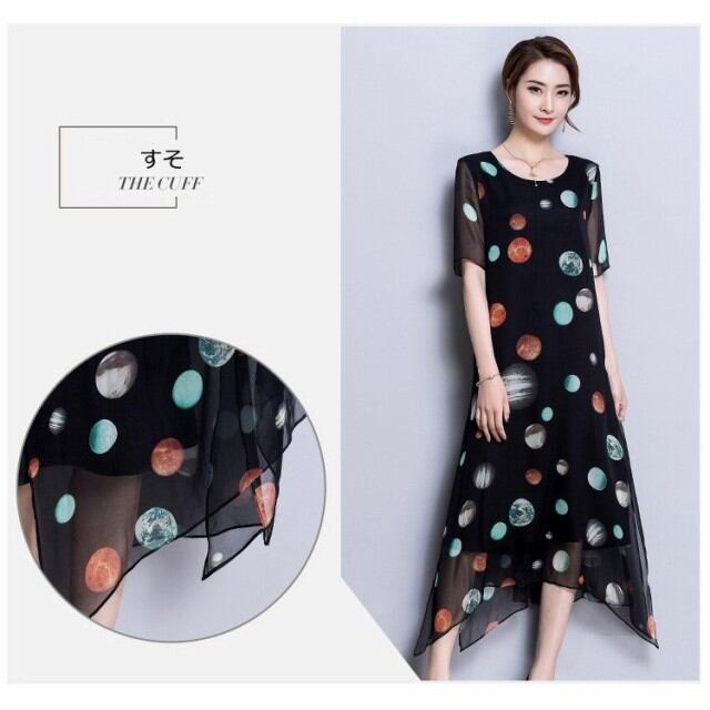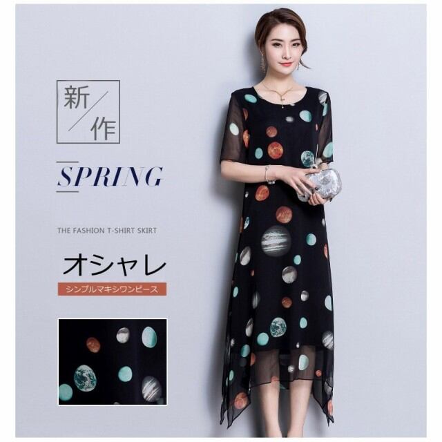 連携キーワード:ワンピース レディース 春夏 マキシ丈ワンピース きれいめ 大きいサイズ シフォン 星柄 半袖 マキシ丈ワンピース 通勤 着痩せ オシャレ 上品