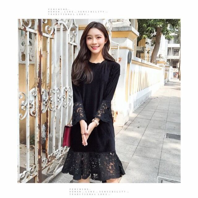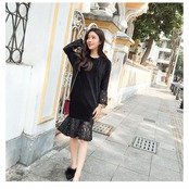 連携キーワード:ワンピース レディース 秋冬 膝丈ワンピース きれいめ 大きいサイズ レース切り替え フレア 長袖ドレス 膝丈ワンピース 結婚式 通勤 オシャレ 着痩せ ロング丈