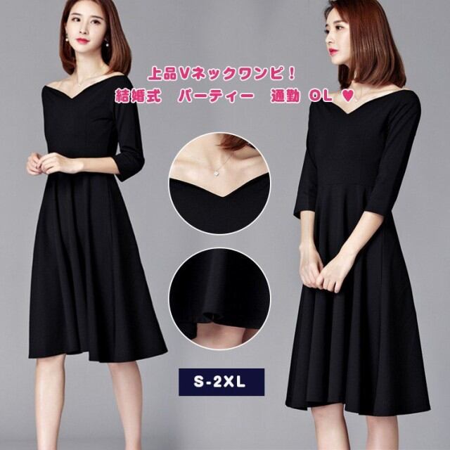 ワンピース ひざ膝丈ワンピAライン短袖 パーティー ドレス2次会結婚式卒業式レディース 夏ワンピ 大人 着痩せ 通勤 OL 新作5分袖