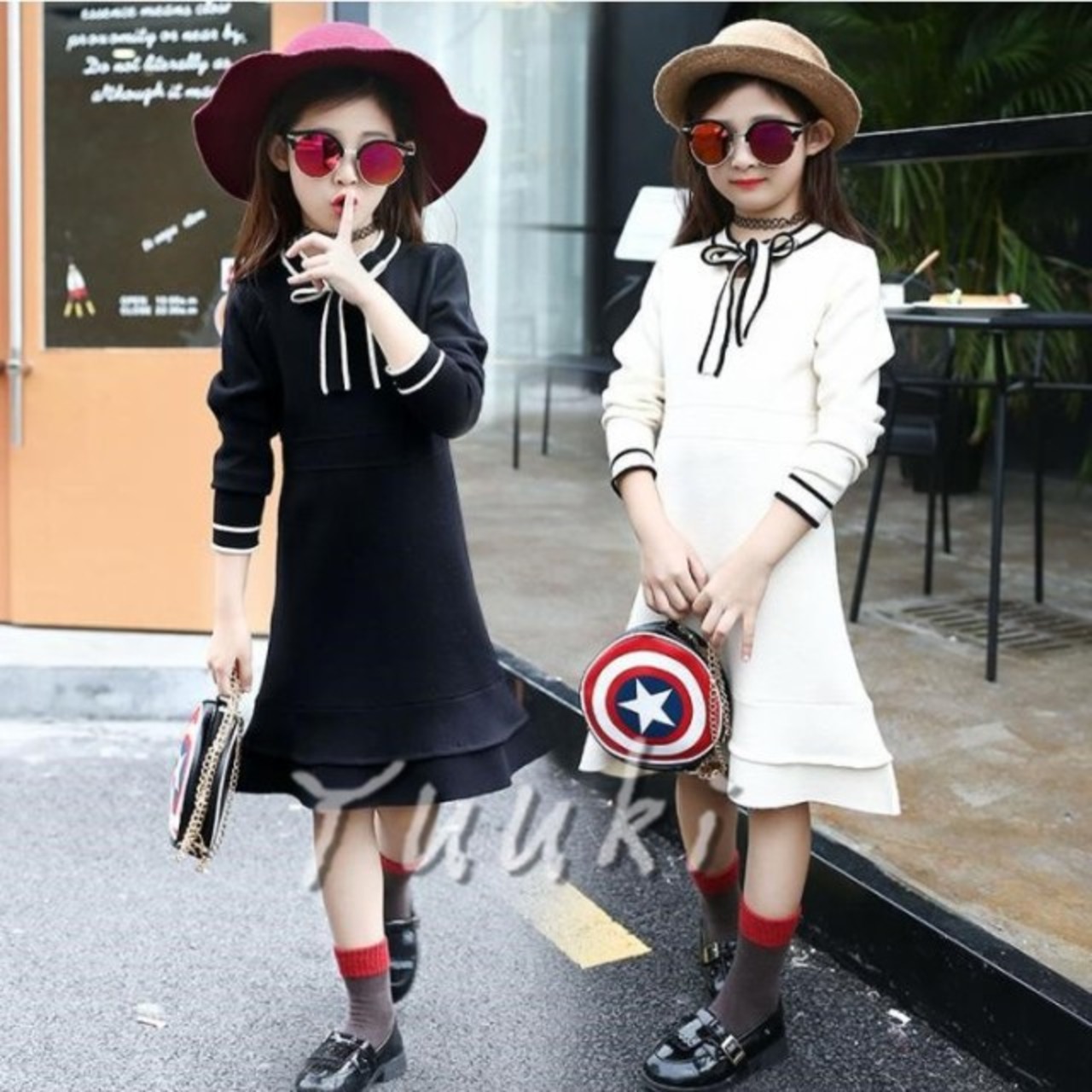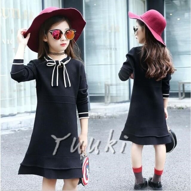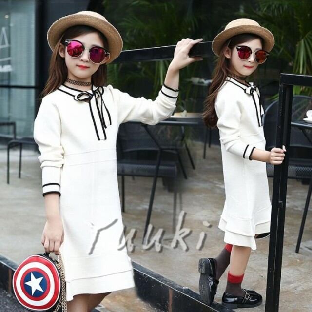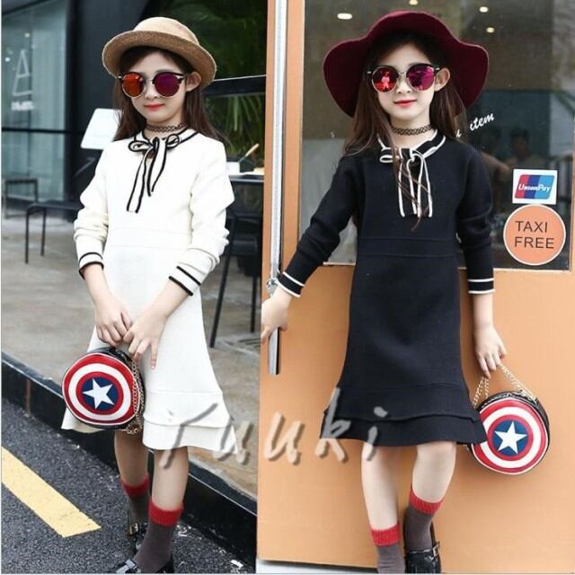 女の子ワンピース ニットワンピース キッズ セーター ワンピースドレス 春秋 黒い/白いワンピース 発表会//卒園式/入学式/パーティ