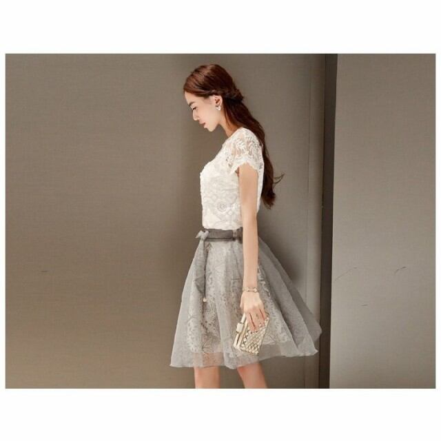 連携キーワード:ワンピース レディース 膝丈ワンピース 春夏 半袖 レースチュールワンピース ドレス 結婚式 体型カバー ワンピース2点セット 女性 大人 オシャレ 上品