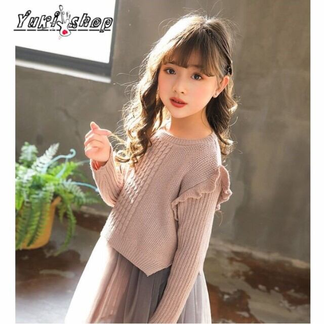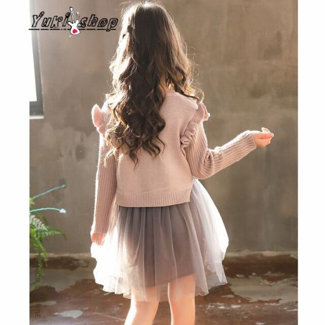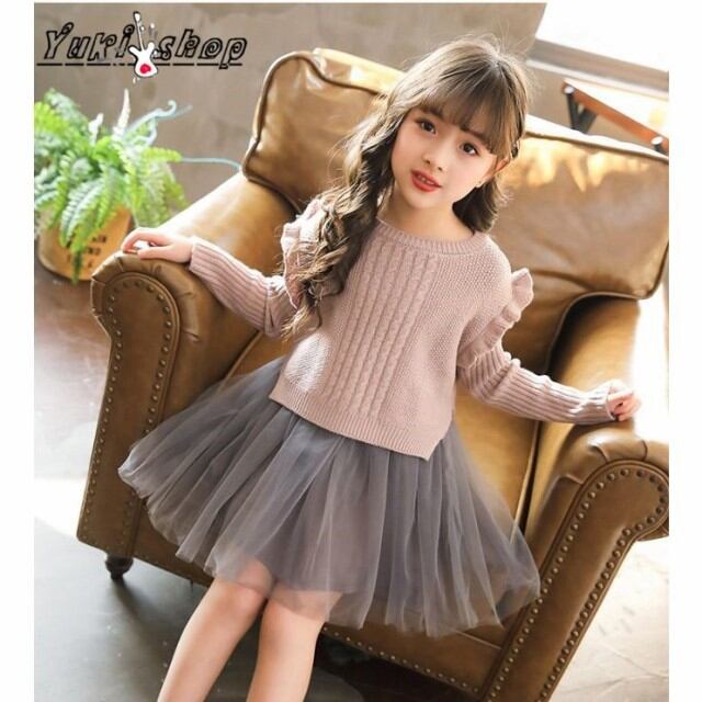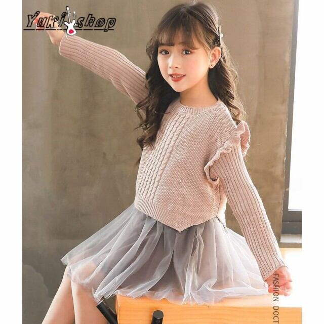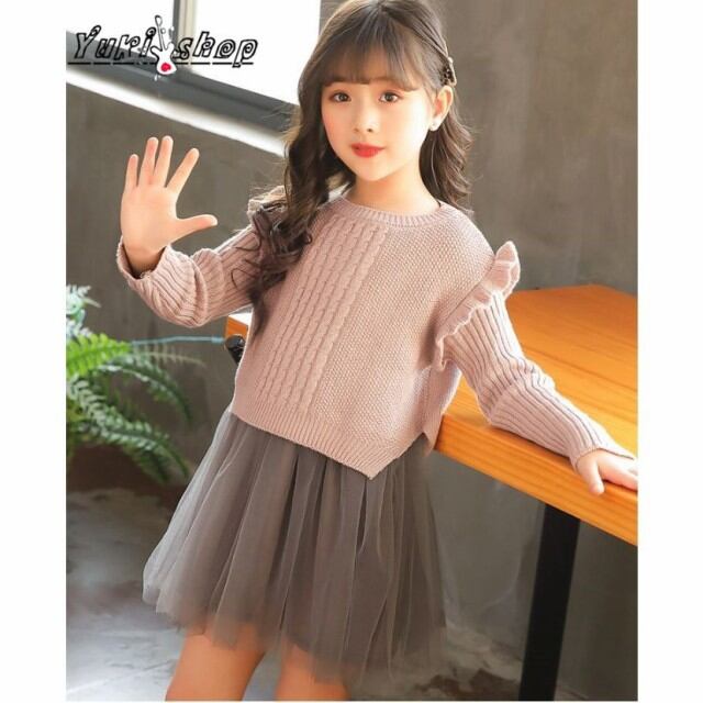 子供服 女の子 ワンピースドレス プリンセススカート セットアップ 長袖 ニット ニットベスト 韓国風 子供ファッション