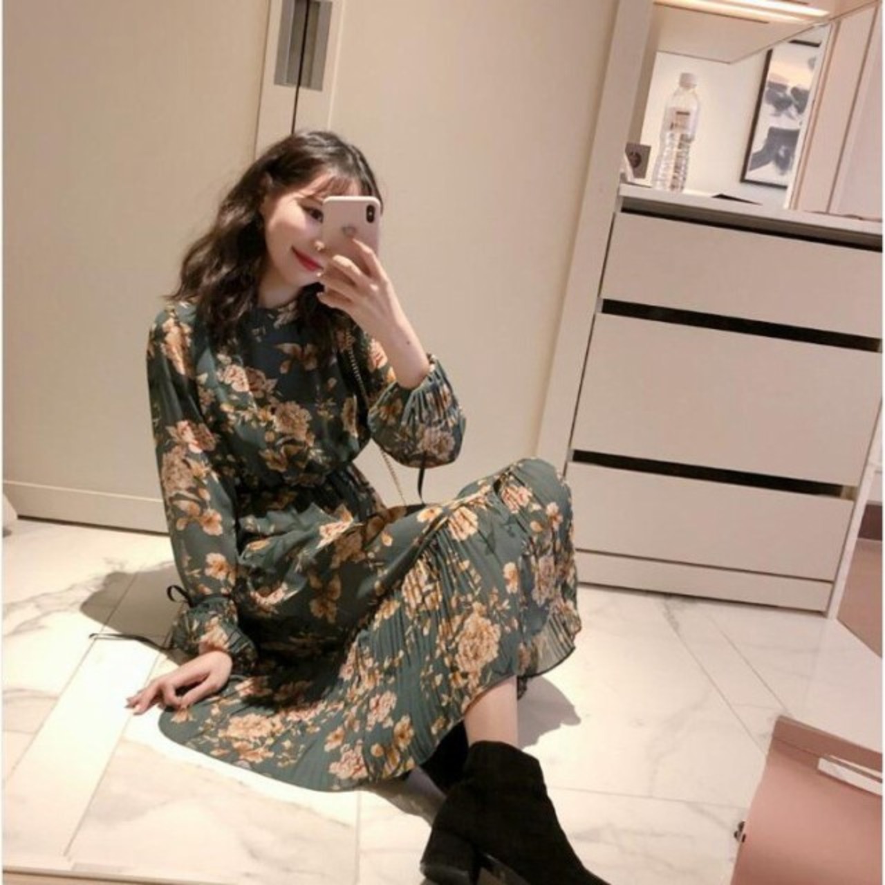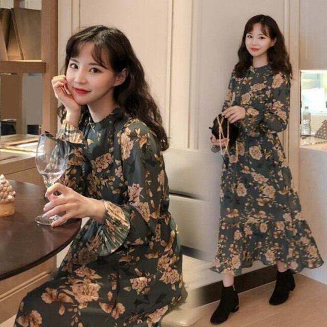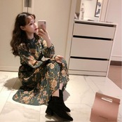 連携キーワード:ワンピース レディース 春秋 ロングワンピース 長袖 きれいめ 花柄 シフォンワンピース Aライン 通勤 着痩せ オシャレ 大人 上品 新作