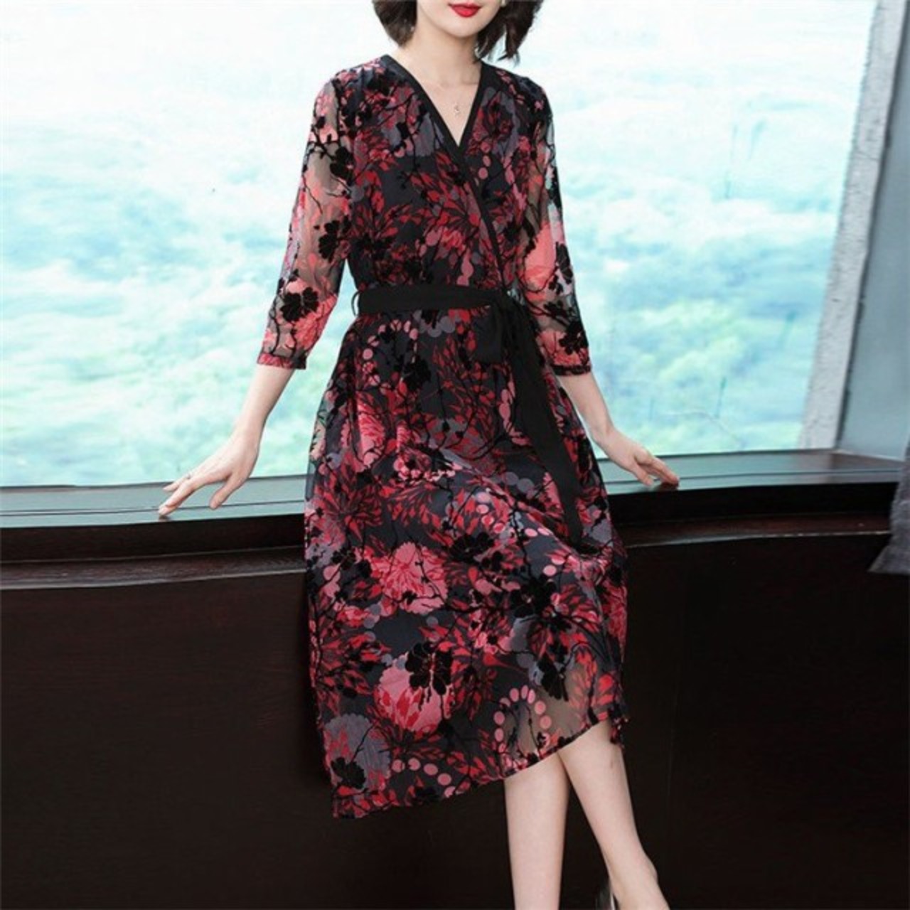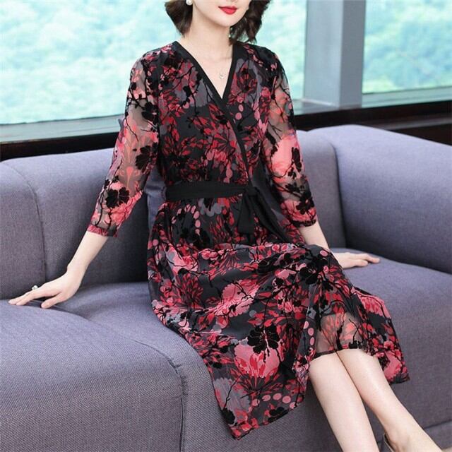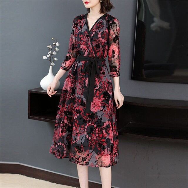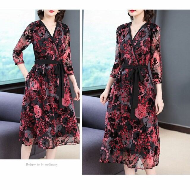 レースワンピース 結婚式 パーティードレス 結婚式 フォーマル 花柄 長袖 フレア 膝丈 ワンピース レディース 結婚式 オシャレ 上品