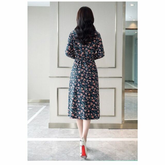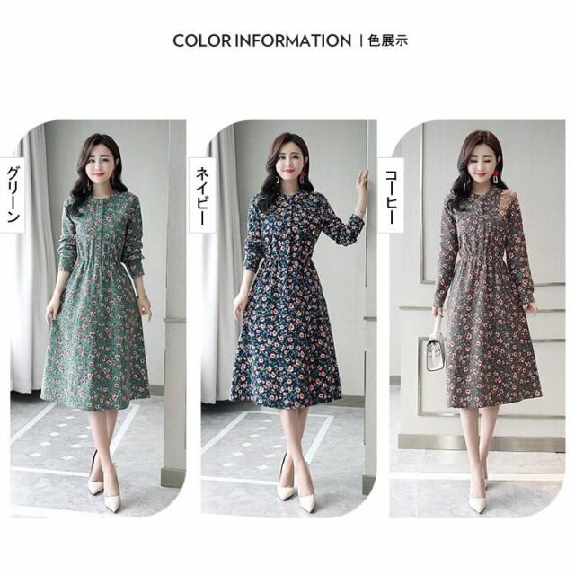 連携キーワード:ワンピース レディース 春秋 膝丈ワンピース 長袖 きれいめ 花柄 膝丈 大きいサイズ ワンピース Aライン 通勤 着痩せ オシャレ 大人 上品 新作 3色