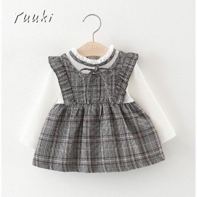 子供服 長袖 ワンピース 韓国 ドレス こどもドレス キッズ ファッション 冬 春 新作 ベービー服 キッズ リボン チェック柄