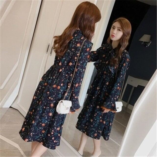 ワンピース ロング丈 マキシ ロングワンピース レディース 花柄 ドット ガウン 羽織 春秋冬 長袖 フレア トップス