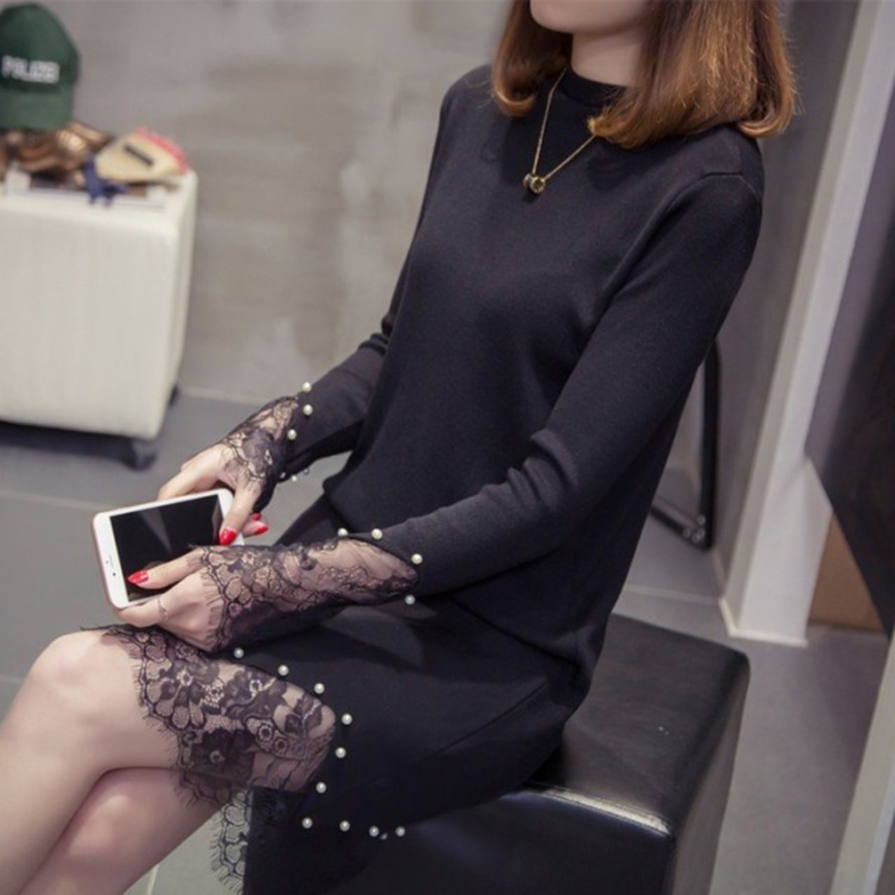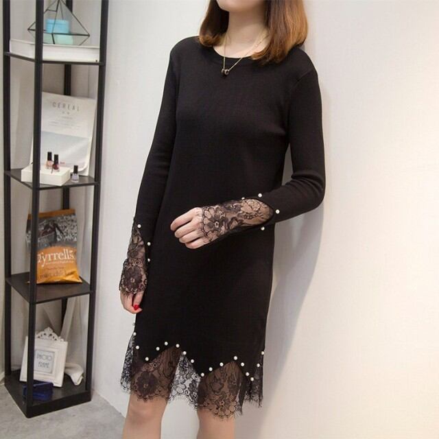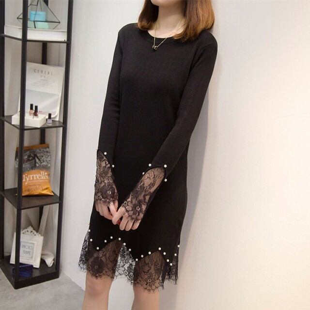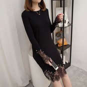 連携キーワード:ニットワンピース レディース 秋冬 ニットワンピース 膝丈 きれいめ ワンピース レース ビーズ付 長袖 大きいサイズ セーター ゆったり 通勤 着痩せ