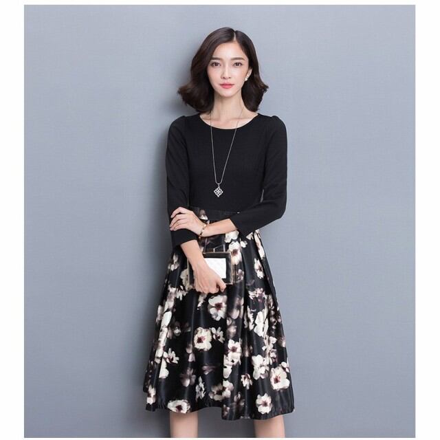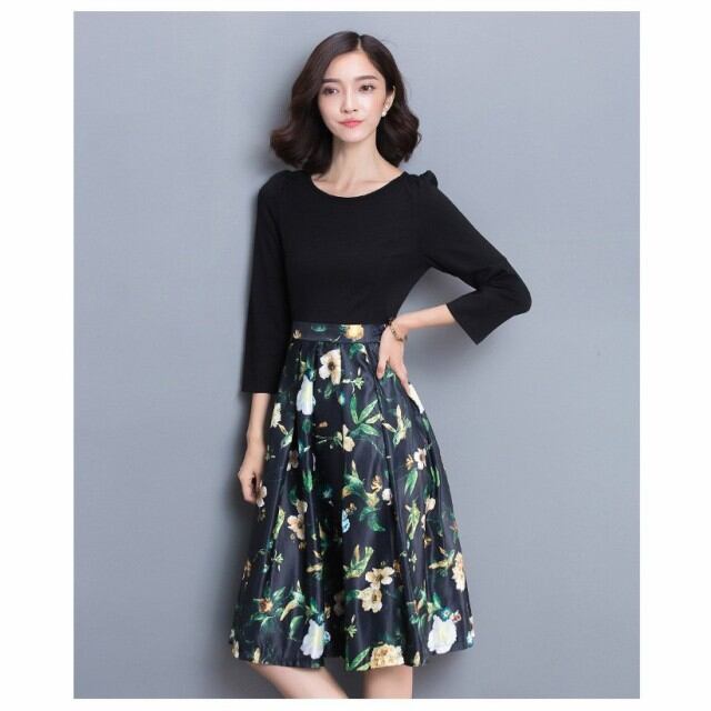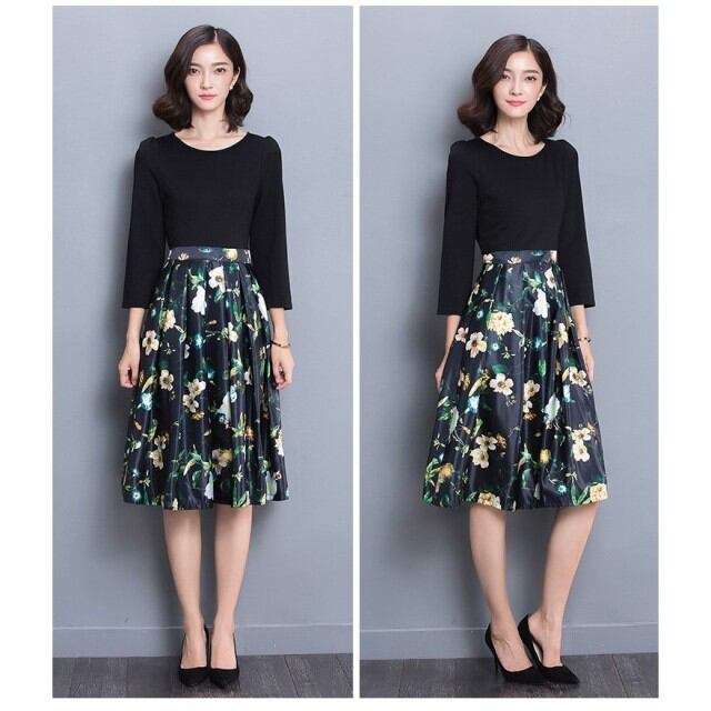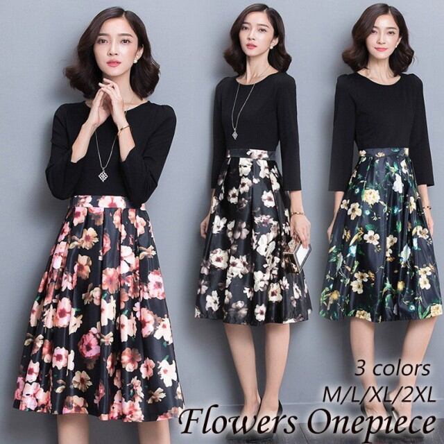 ワンピース レディース 膝丈ワンピース 春 花柄ワンピース七分袖 きれいめワンピースロング丈 着痩せ 通勤 OL 結婚式 パーティー ドレス 大人 上品 3色