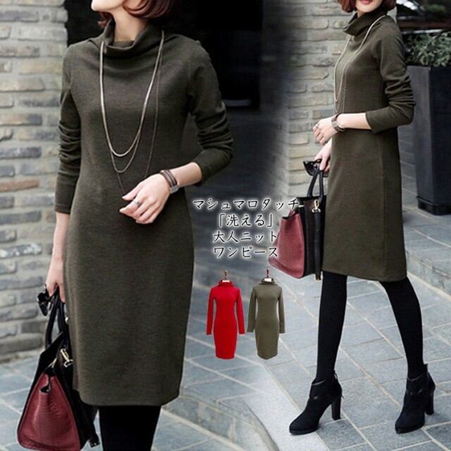 ワンピース レディース ニット ワンピース 膝丈ワンピース ラウンドネック ファッション 大きいサイズ