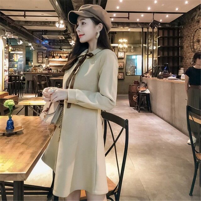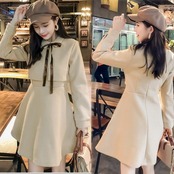 ワンピース レディース ウール混ワンピース ミモレ丈 Aライン ワンピ 秋 キレイめ 冬 リポン 暖かい 膝丈 細身