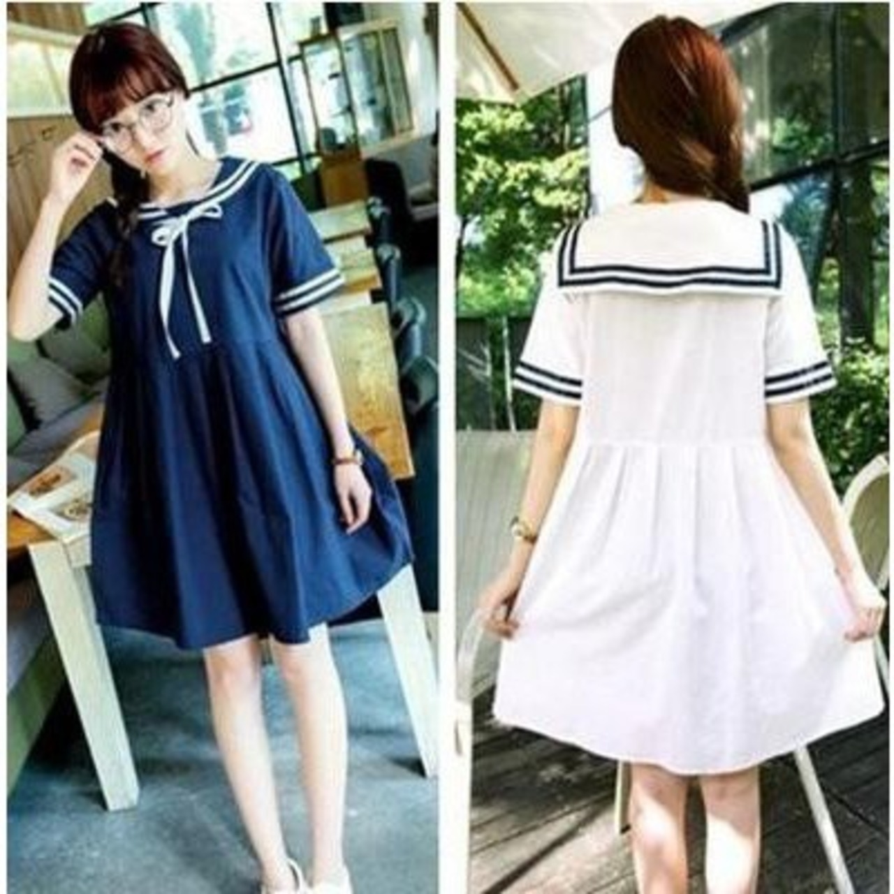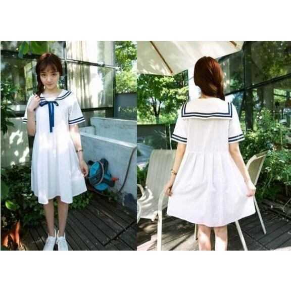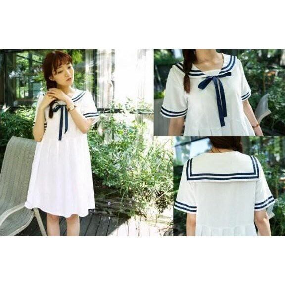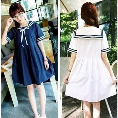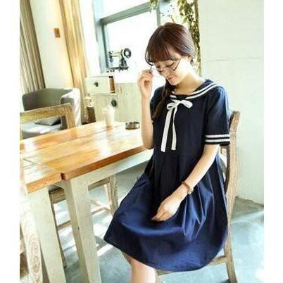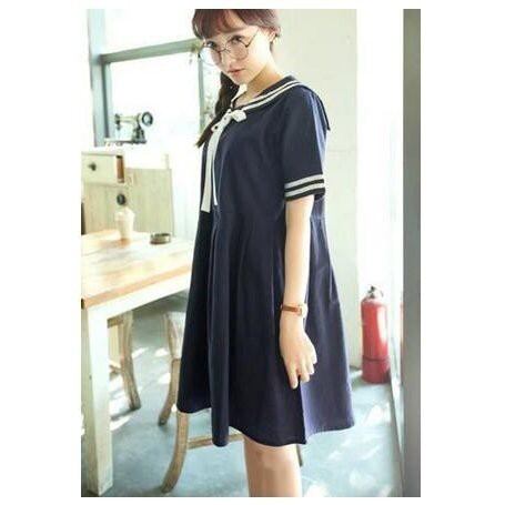 レディースマリンセーラー半袖ワンピース 通学フレア学院風 夏ロリータ森ガール海軍風